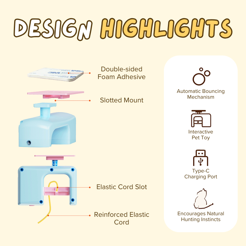 Cats get bored when you’re busy — but this toy keeps them entertained all day. Simply stick it onto any smooth surface and watch the feather bounce automatically, mimicking real prey. It engages your cat’s hunting instincts, giving them exercise and fun without you lifting a finger. Perfect for active kittens or lazy cats who need a little motivation.