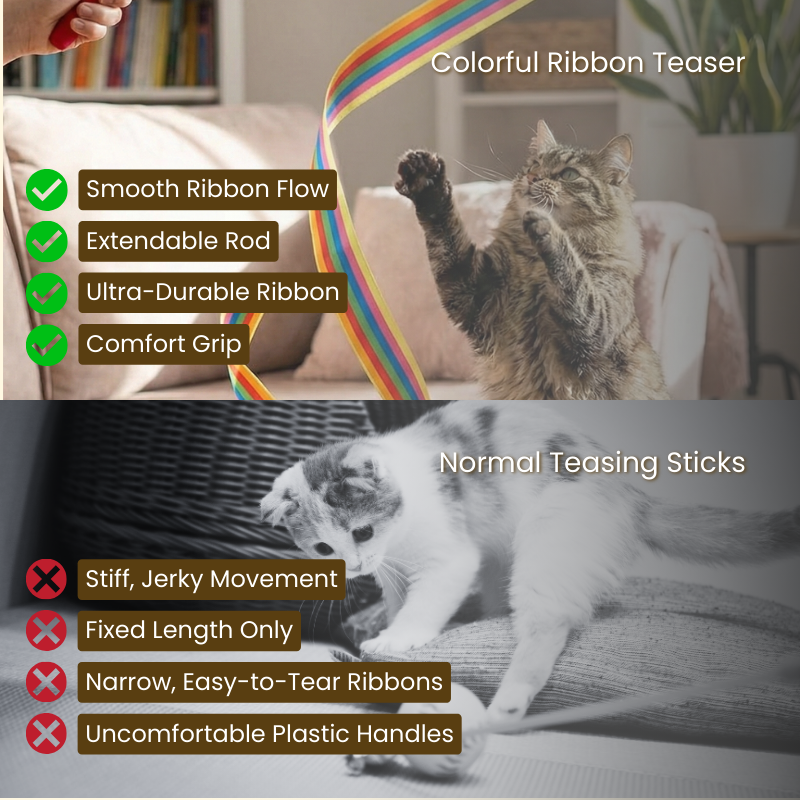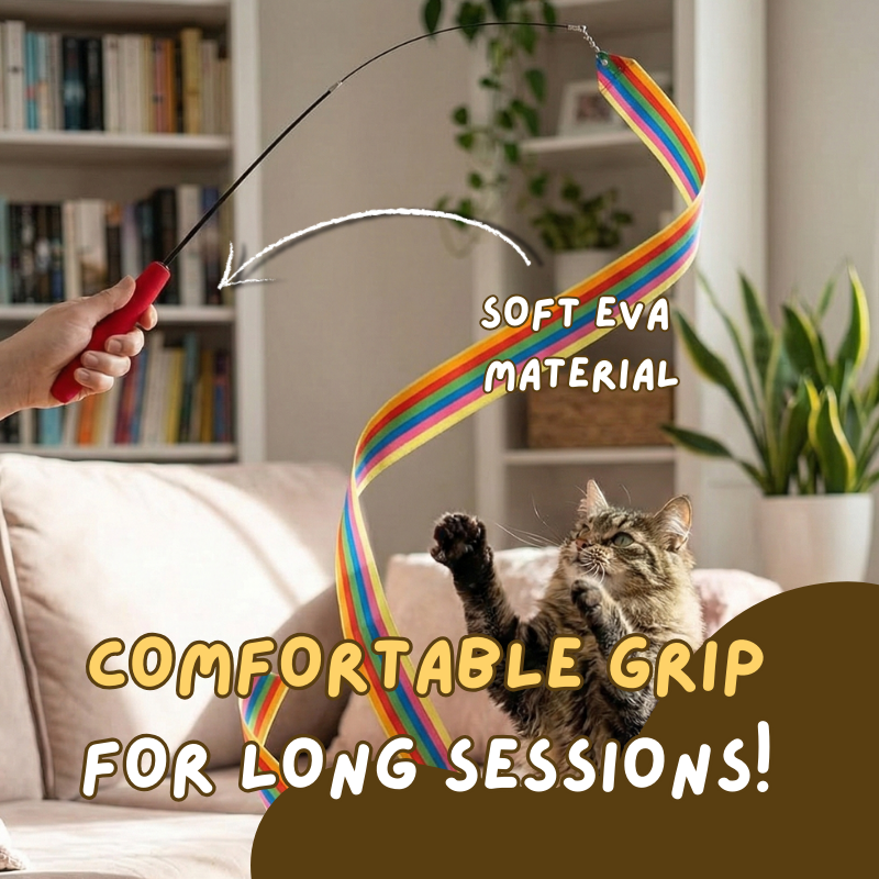 Turn every play session into a colorful chase with this Colorful Ribbon Teaser. The soft steel wire makes the ribbon glide and spin effortlessly, while the cushioned handle keeps you comfortable during long play. Durable, wide, and irresistibly vibrant, it keeps your cat active, alert, and happily entertained.