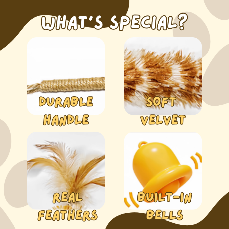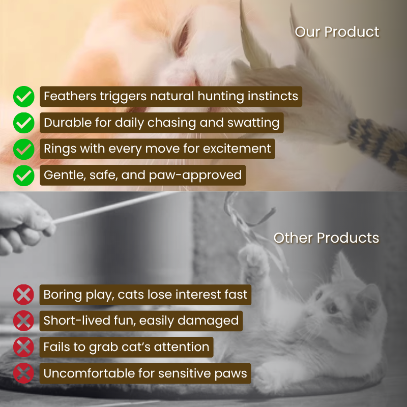Turn playtime into a wild adventure with the Handmade Feather Teaser! Real feathers flutter like prey, while the jingling bell sparks instant excitement. Durable, safe, and irresistibly fun, it keeps your cat active, curious, and happily entertained every day.