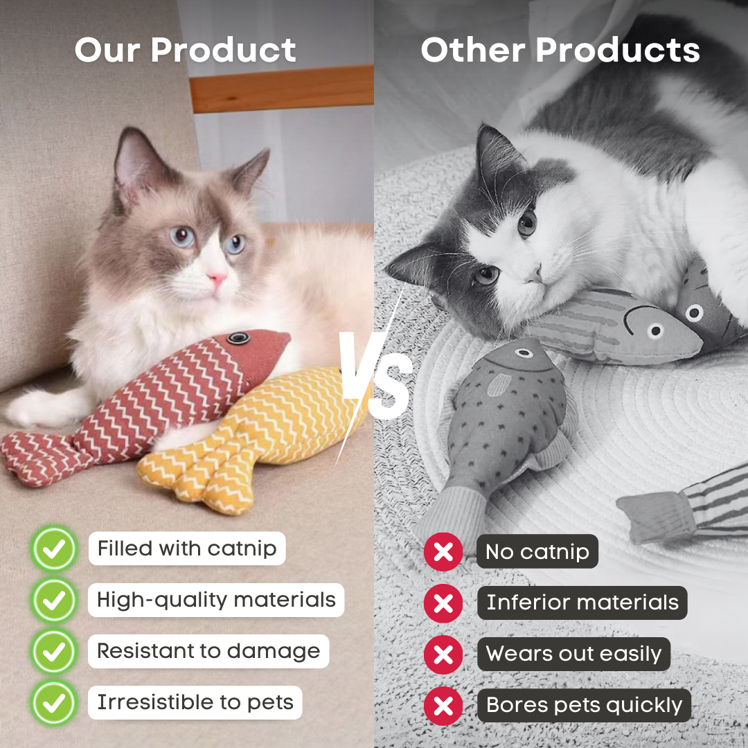 Cats absolutely love fish, so why not give them a fish that they can cuddle and play with? With our Fish Catinip Toy, made of soft plush and with an adorable handmade appearance, your cat is sure to fall in love immediately and have some awesome play and nap times!