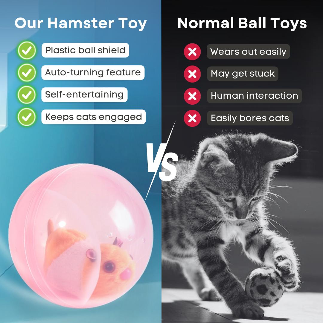 Stop your cat from just laying around all day and getting unhealthily fat with our Hamster Toy! With an automatic running feature and a transparent ball to protect it, your cat is guaranteed to have fun all-day!