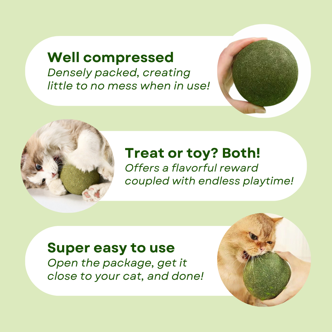 The Jumbo Catnip Ball blurs the line between treat and toy while being entirely enjoyable for your cat! Who needs to play with the ball 24/7 when your catnip can become a ball itself!