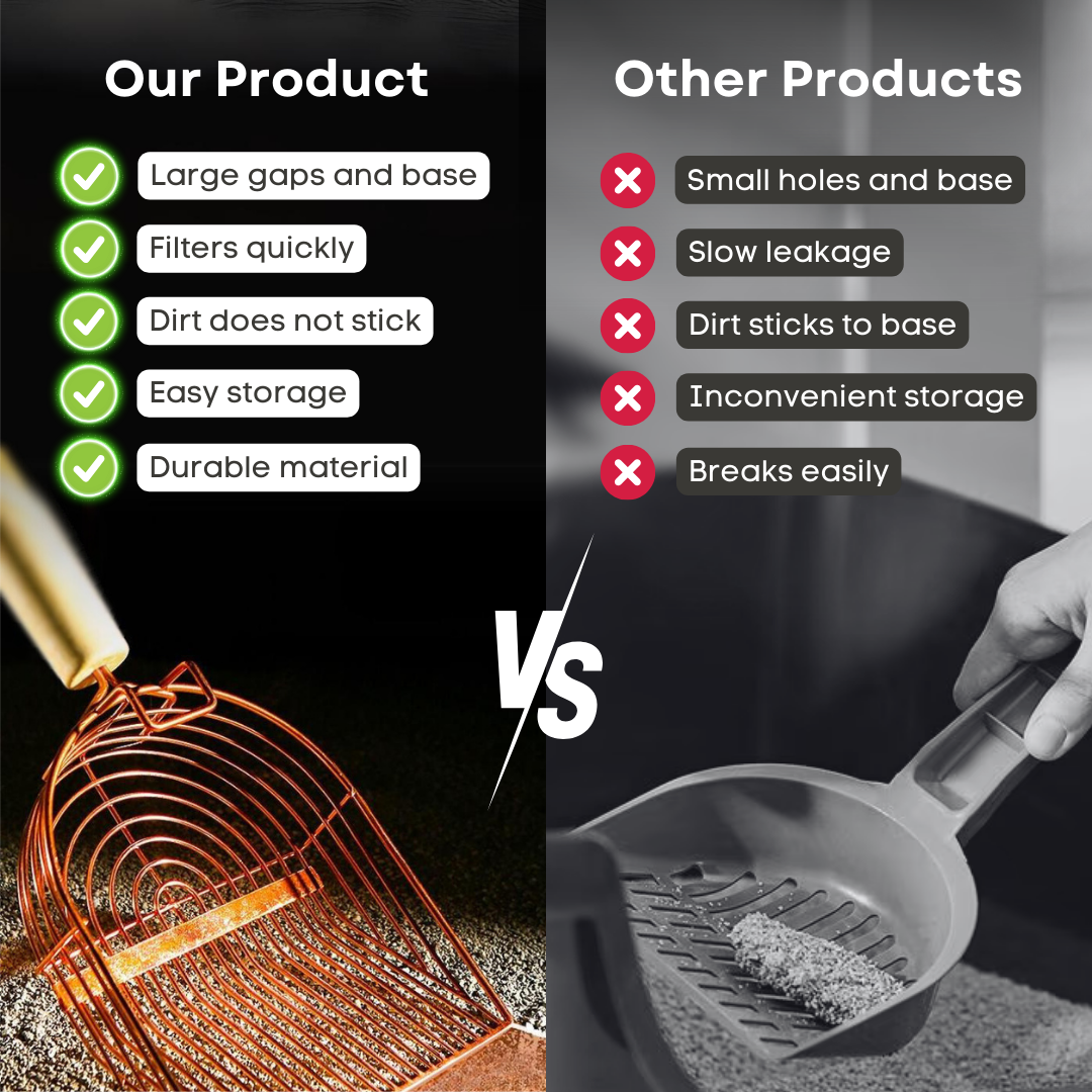 No more scraping the bottom of the litter box with difficulties, and no more multiple scoops to clean it up too! Our Litter Scooper 2.0 is a high-quality, large and durable scoop made to make your life easier! Now come with a Scooper holder base too!