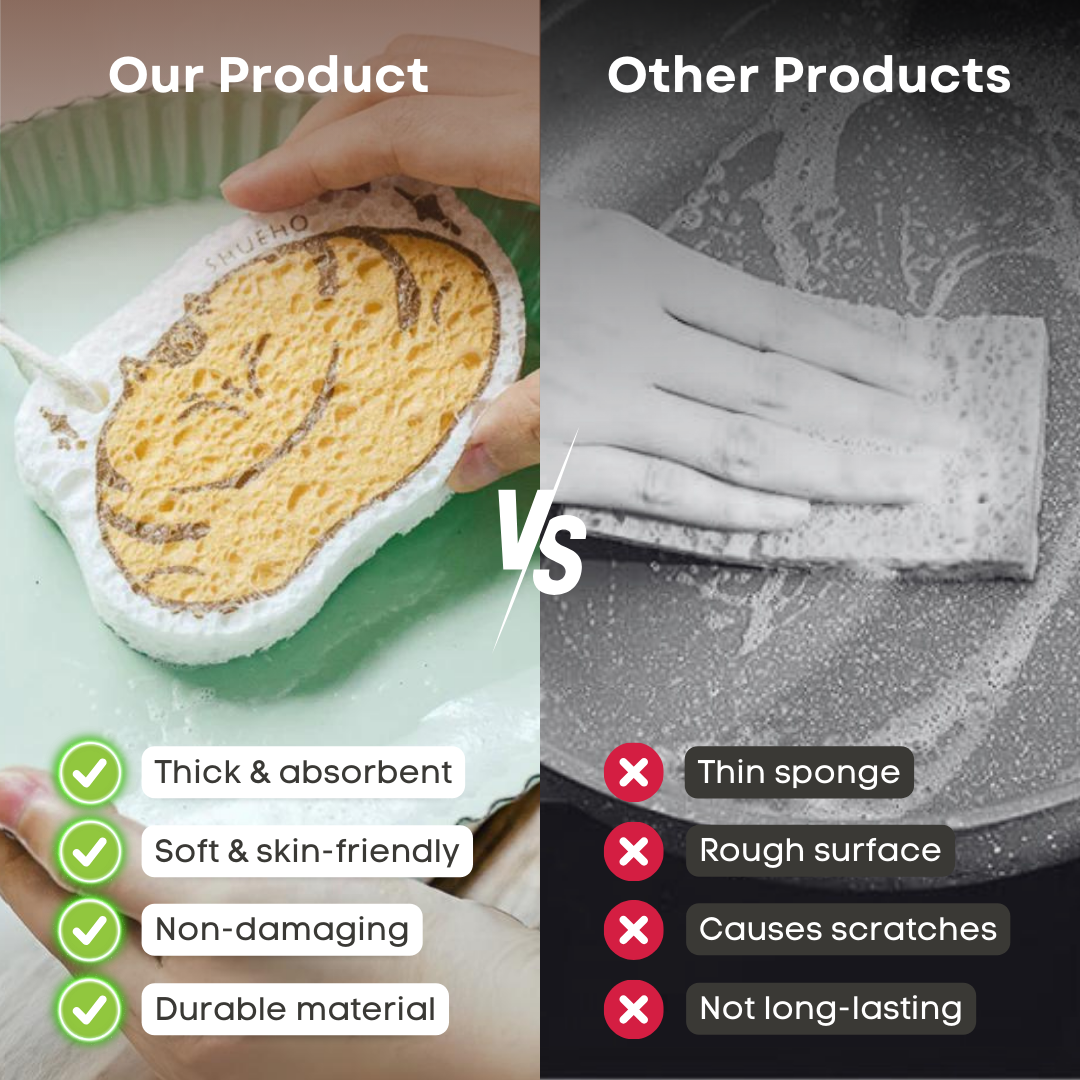 Our all-natural, cute, and almost Magical Sponge will keep all your dishes clean with just one swipe! Say goodbye to callouses from scrubbing, because this sponge has it all!