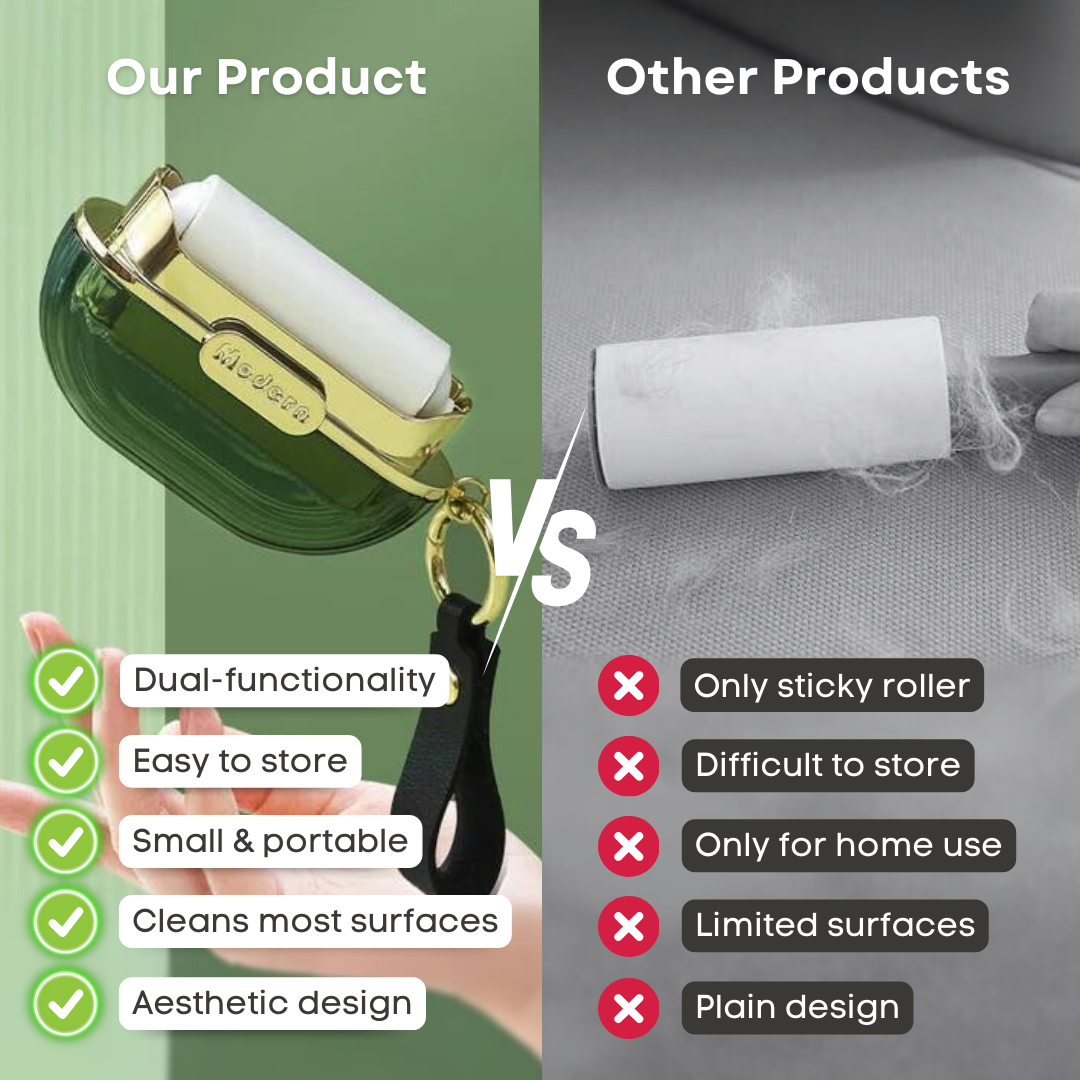 No more need to worry about getting a big lint and fur roller, because our Mini 2-in-1 Hair Remover has both of what you need, without the problem of size or weight! Best to keep in your purse!