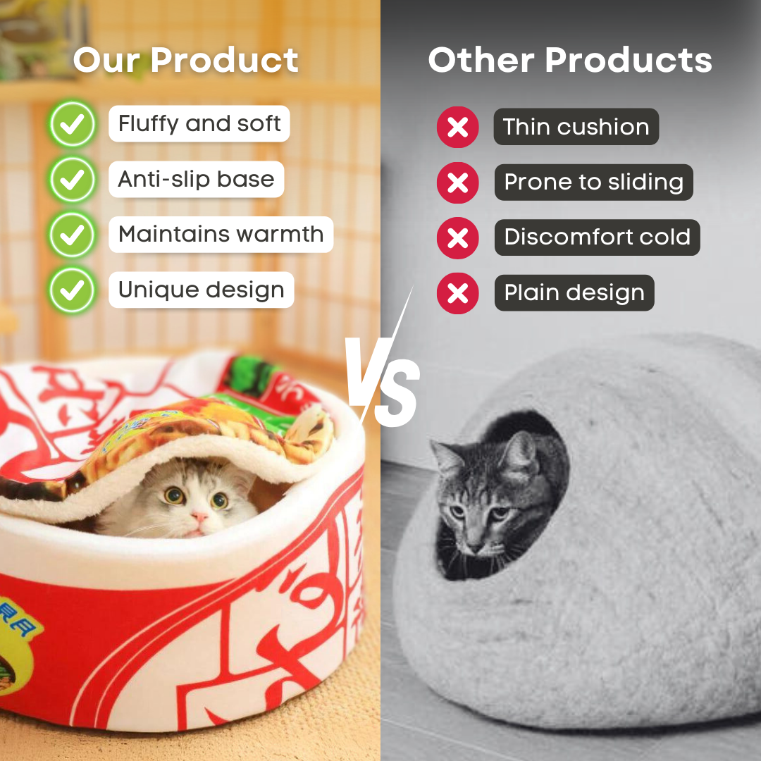 Your cat will have sweet dreams in one of these noodle cup beds! With both small and large sizes, these insanely adorable ramen beddings is purrfectly comfortable for your kitty!