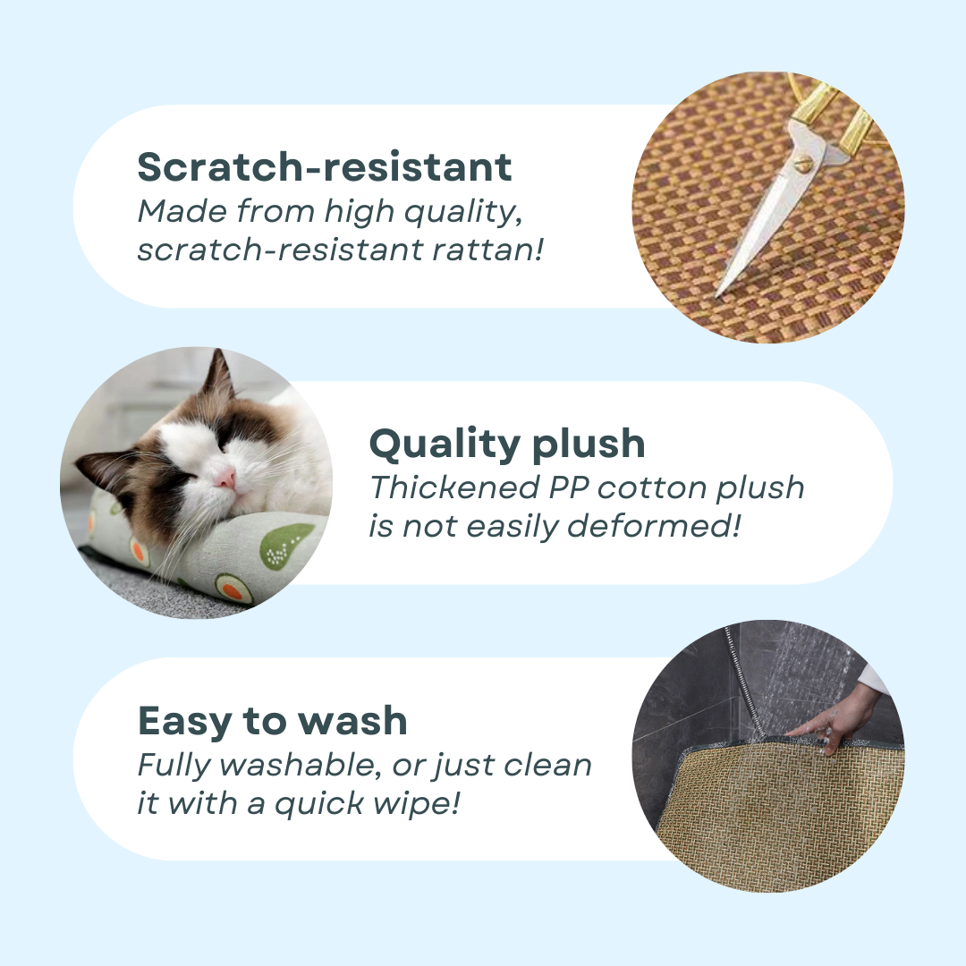 Does the summer heat get to your cat and give them a hard time sleeping? Well, with our Snuggly Cooling Mat, you can finally let them chill, rest, and play on a nest that will keep them cool with its amazing breathable matting and cute design!